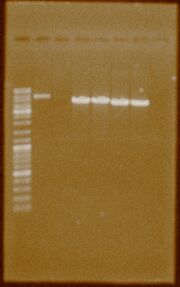 | 05:16, 25 September 2011 | HydG DD aislado concentracion.JPG (file) | 24 KB | La primer linea es HydG, la concentración es mínima, se ve apenas cerca de 1700bp. La segunda linea es el ladder de fermentas y el resto con cosas de Vladimir. | |