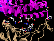 | 08:32, 7 October 2020 | Burnettweek5fig8.png (file) | 383 KB | SARS-CoV RBD (year 2002) complexed with human ACE2 depicted with the spheres model with the secondary structures colour scheme. | |