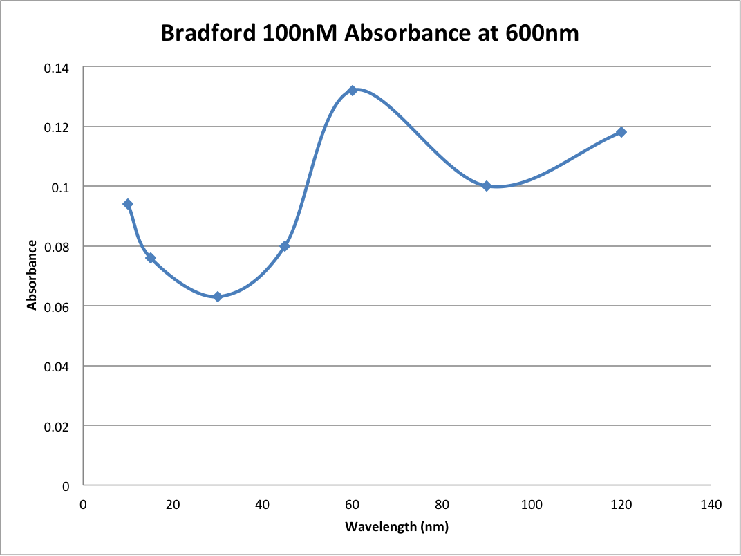 Absorbance at 600nm 1uM Bradford AMS 6102015.png