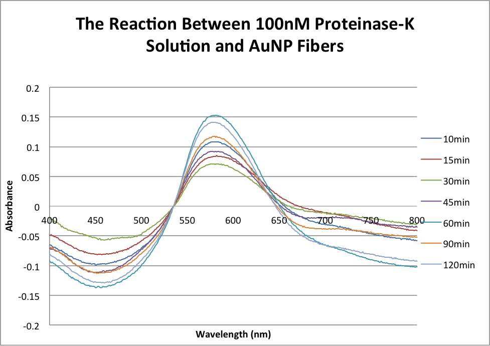 AMS The Reaction Between 100nM Proteinase-K Solution and AuNP Fibers .png