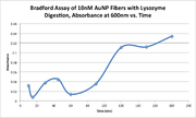 AMS 10272015 Bradford Assay of 10nM AuNP Fibers with Lysozyme Digestion, Absorbance at 600nm vs. Time .png