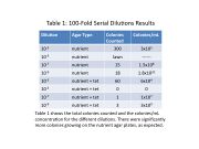 | 15:43, 9 July 2014 | Dagum Table 1 Serial Dilutions.jpg (file) | 72 KB | Serial dilutions of Transect 3 Hay Infusion grown on nutrient agar and tetracycline plates. | |
