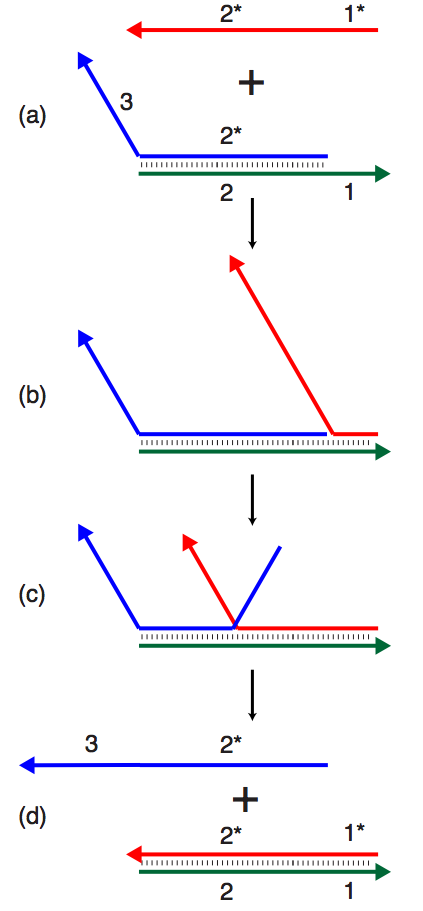 | 19:45, 1 April 2013 | Strand displacement.png (file) | 42 KB | A toehold-mediated strand displacement reaction. The red strand binds to the green strand, displacing and freeing the blue strand. Source: [http://en.wikipedia.org/wiki/File:Strand_displacement.svg http://en.wikipedia.org/wiki/File:Strand_displacement.svg | |