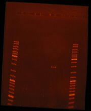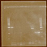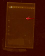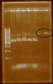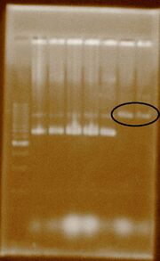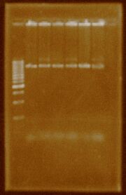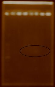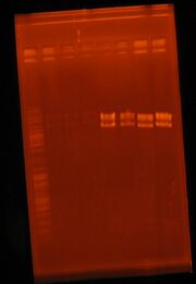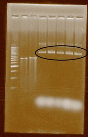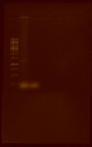 | 00:26, 12 August 2011 | Extraction.JPG (file) | 83 KB | This gel shows the resulting 10 plasmid extractions. | |