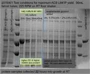150404 autoinduction of ACS 2P2F with different culture volumes--protein gel.png