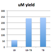 Janet Matsen: /Users/janet/Dropbox/In_Progress/misc/150331 vary culture volume and added glycerol for acs l641p in pet bl21 de3/plots/2--150402_less_culture_volume_yields_more_protein--stat_summary_use.png