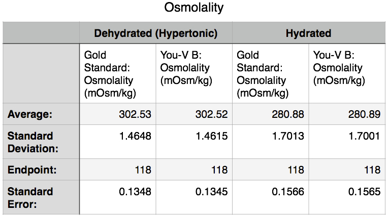 | 21:23, 10 October 2014 | Osmolality Descriptive Stats Image.jpg (file) | 170 KB | Descriptive statistics of osmolality between gold standard measurements (blood test) and You-V B contacts. Statistics include: average, standard deviation, endpoint, and standard error. | |