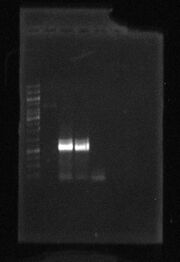 | 16:53, 7 June 2010 | Luci PCR.JPG (file) | 1.22 MB | First and last lines are the molecular weight ladder. 2º => positive control<br /> 3º and 4º => PCR samples<br /> 4º => negative control<br /> next two => Augusto’s<br /> next four => Mariana’s 17D, 18D, 30D, 18D respectively.<br /> |
