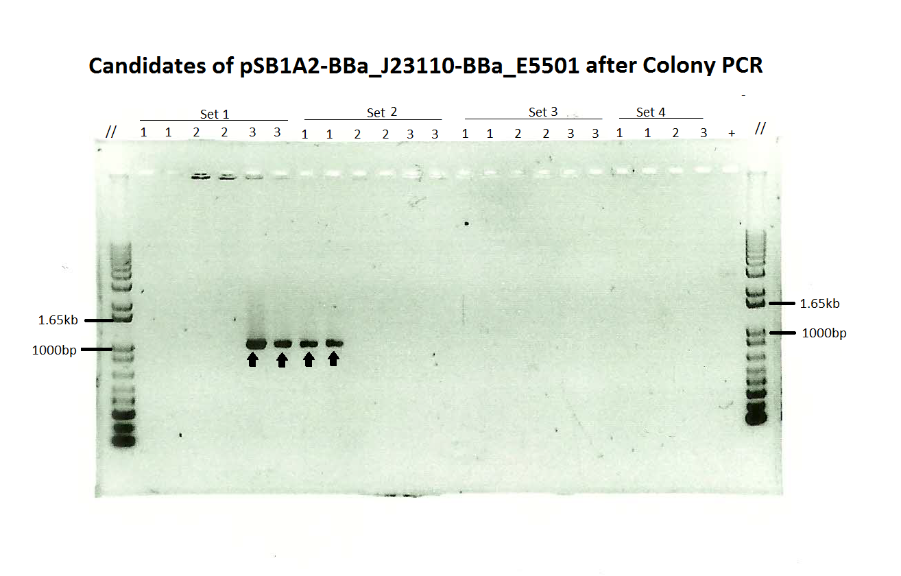 | 07:48, 6 June 2016 | Candidates of pSB1A2-BBa J23110-BBa E5501 after Colony PCR.png (file) | 616 KB | ||