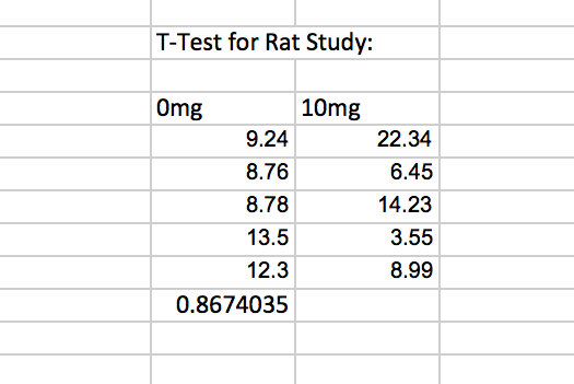| 17:43, 10 September 2014 | T-Test for Rat Study.png (file) | 28 KB | This is the T-Test for the Rat Study for Experiment 2. | |