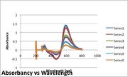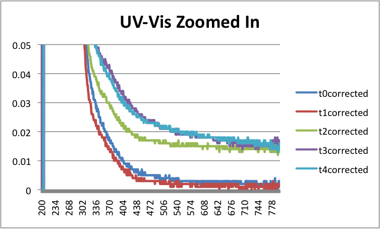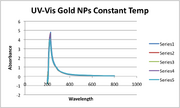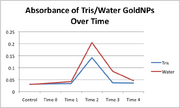 | 04:27, 6 September 2011 | GoldNanoparticleUVSpec.png (file) | 65 KB | Graph of UV Spec. for 0.0013 grams of BSA and 0.0007 grams of HAuCl4 in 10 mL of 7.55 pH 50 mM Tris Solution measured at intervals of 30 minutes. Graph data is corrected for a control. |