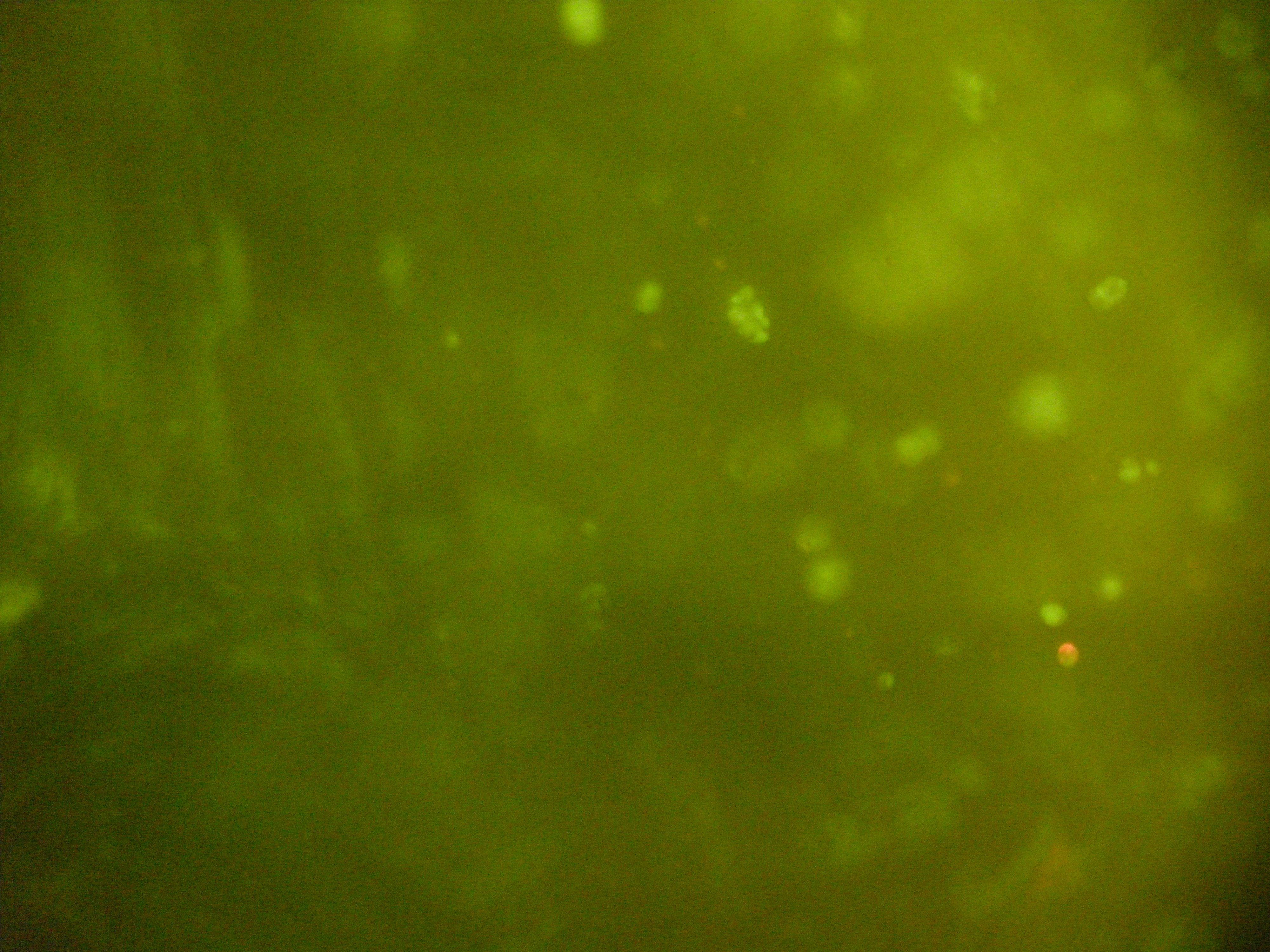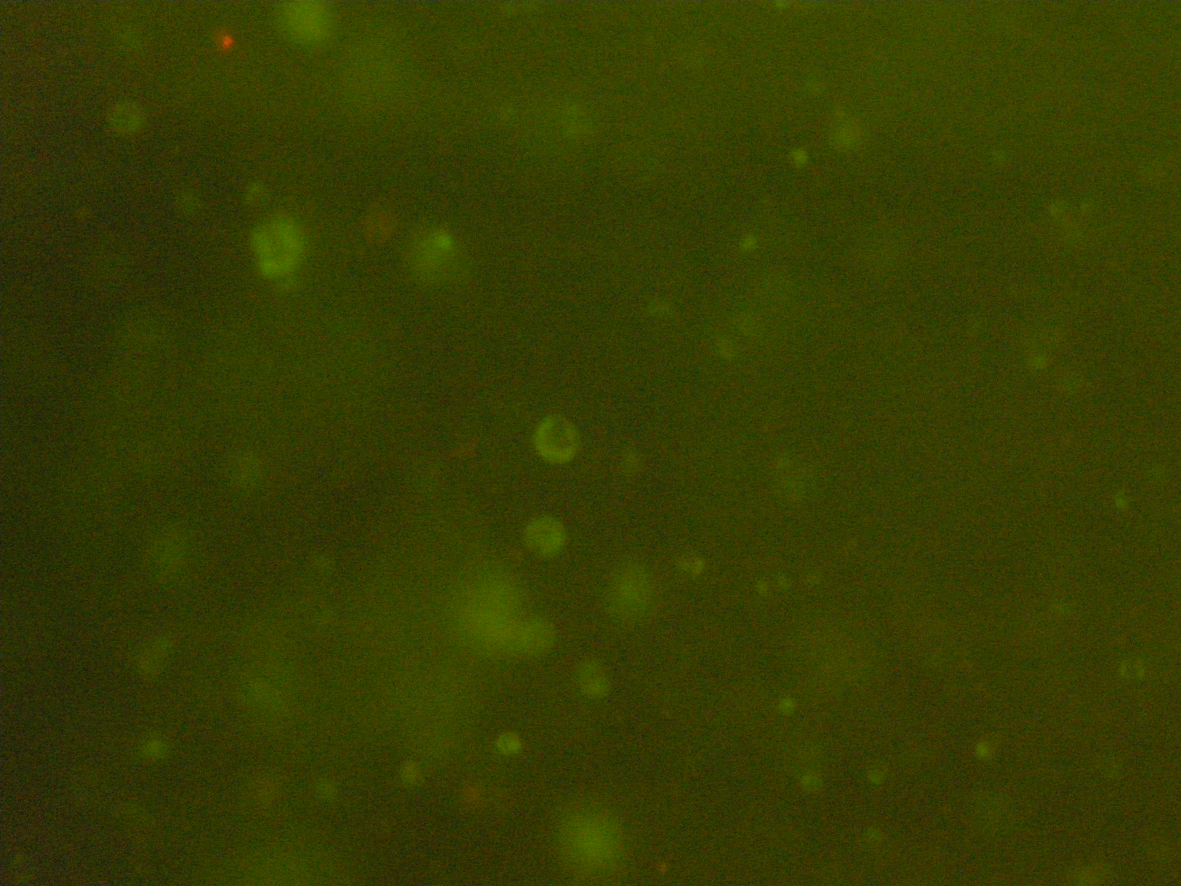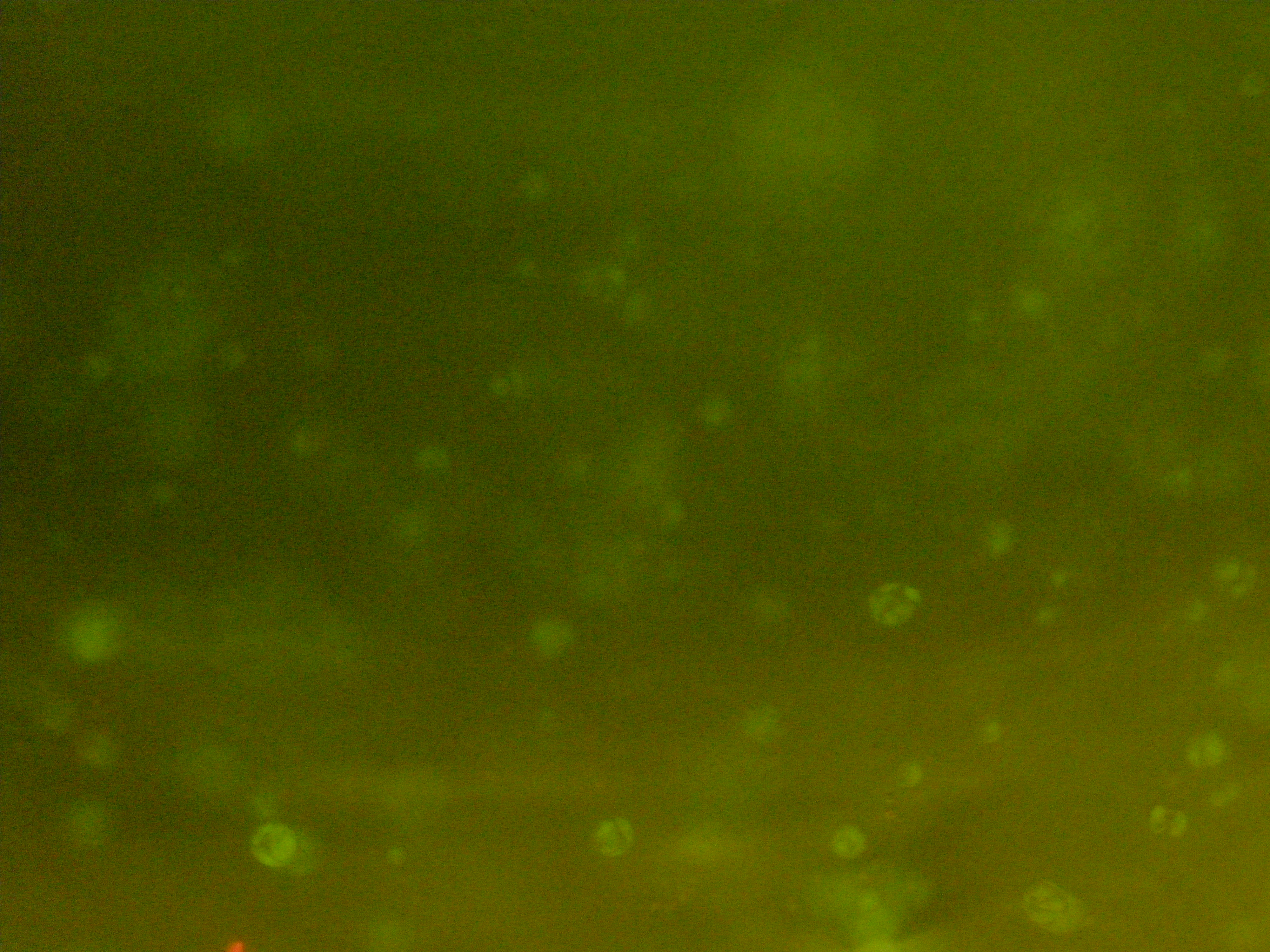 | 19:26, 23 April 2010 | DSCN0798.JPG (file) | 2.07 MB | Fluorescent microscopy of alginate bead cross-linked with 51 mM CaCl2 containing chonodrocytes. Objective magnification is 10X. Green cells are living cells that were stained with SYTO 10, while red cells are dead cells stained by Ethidium. | |