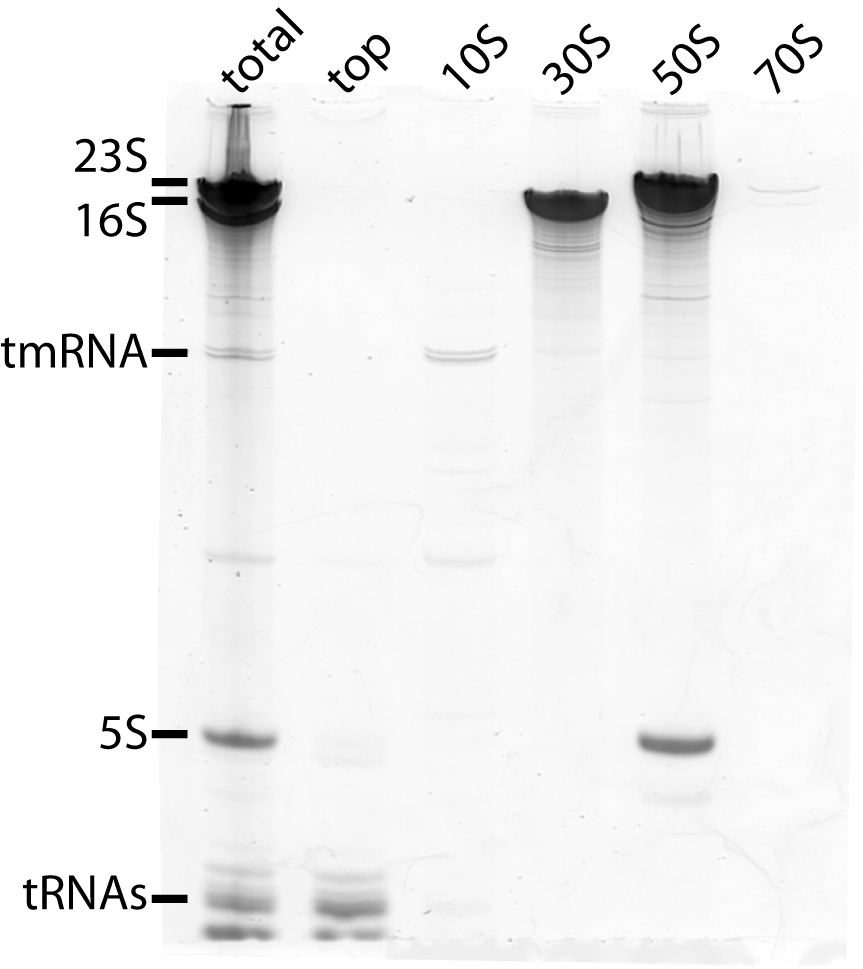 | 20:54, 25 January 2007 | SDM RNA3a.tif (file) | Error creating thumbnail: File missing | 375 KB | E. coli RNAs purified from Sucrose gradient fractions. The gradient was run with low Mg++ which dissociated the 70S particles into 30S and 50S. |