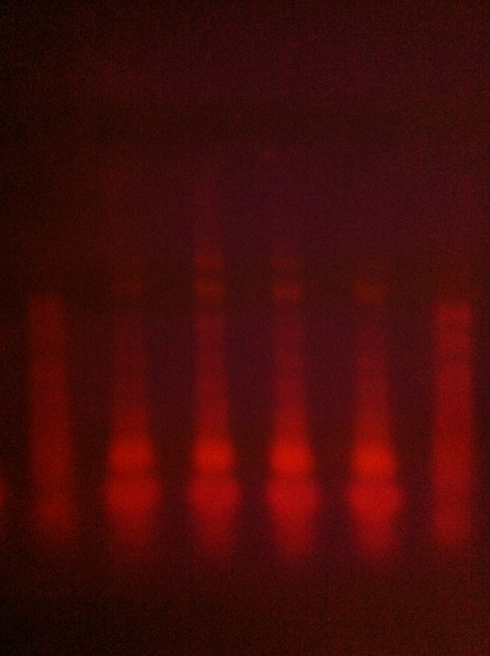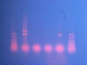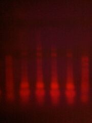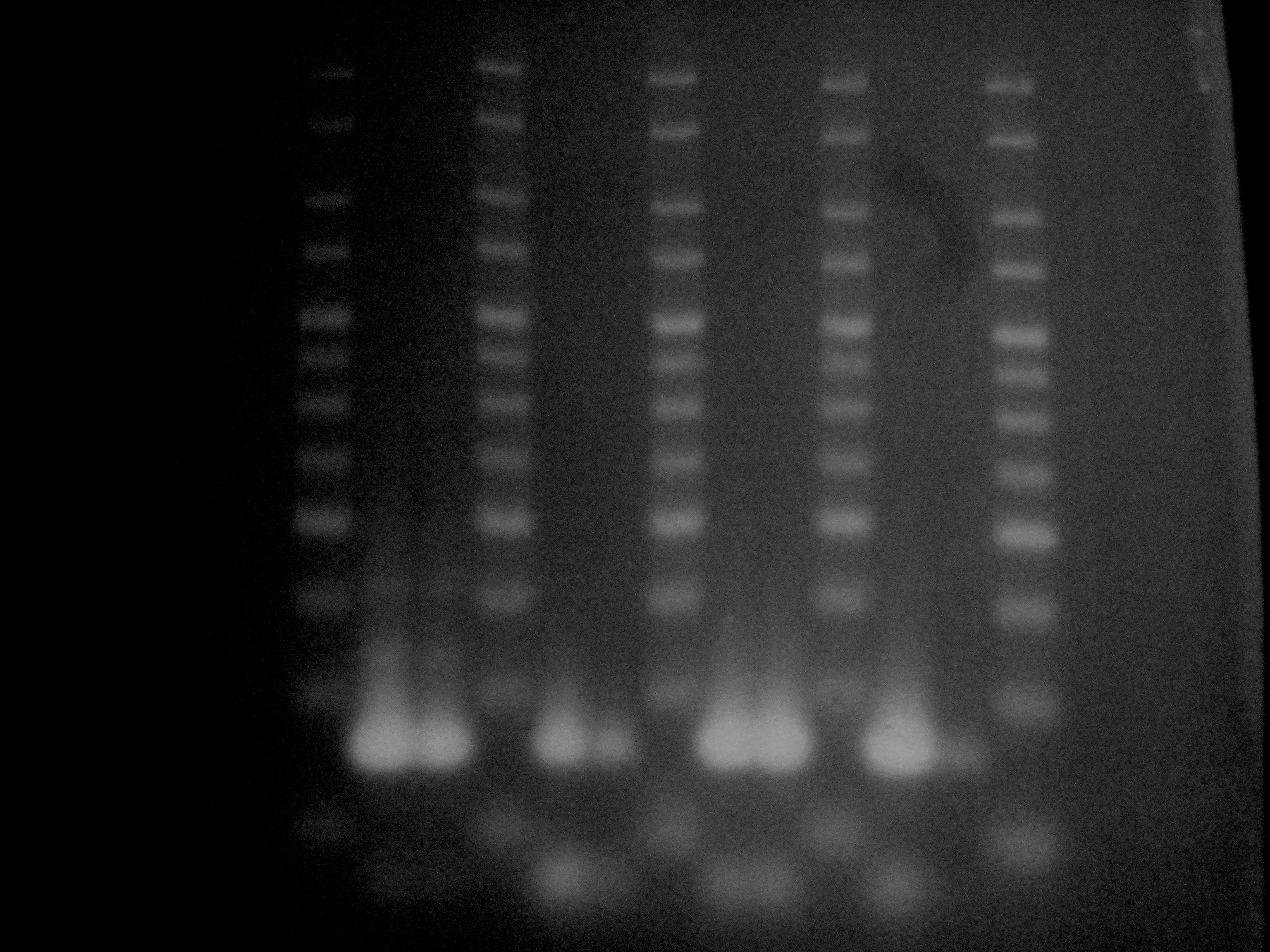 | 19:14, 10 July 2011 | 07092011-2.jpg (file) | 207 KB | 07092011 Multiplex PCR attempt. 2% agarose ~3hr @ 50v. | |