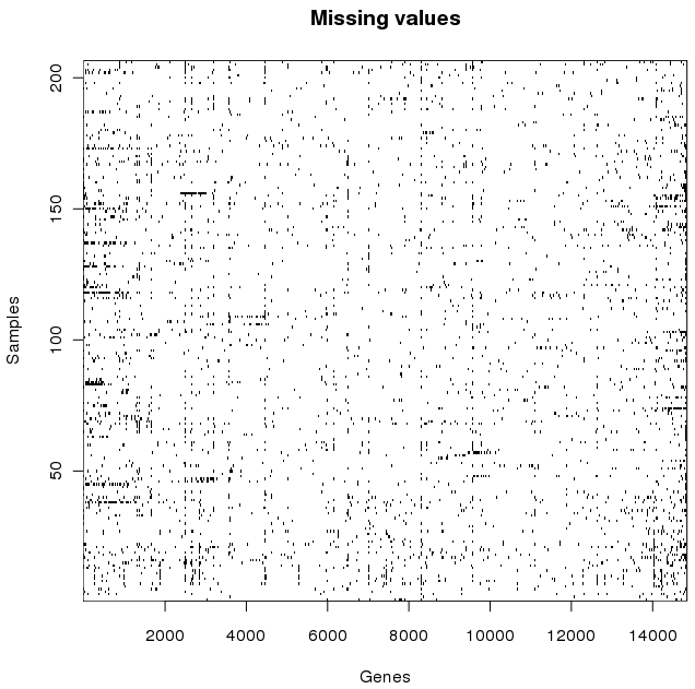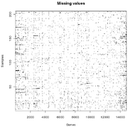 | 23:47, 9 November 2011 | Visualize missing values in matrix.png (file) | 36 KB | Example of how to visualize missing values (encoded as "NA") in a matrix using R. | |