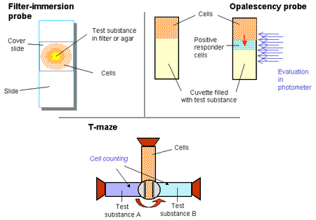 [14] Leick V.; Helle J. (1983). "A quantitative assay for ciliate chemotaxis.". Anal Biochem. 135 (2): 466–9. doi:10.1016/0003-2697(83)90713-3. PMID 6660520.