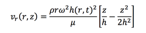 In the model of Emsile et al., the flow of the fluid is also assumed to be unidirectional in the radical direction. So only the radial component of the fluid velocity is not zero. What’s more, the fluid is assumed to be rotated together all the time with the substrate. So, the angular velocity of the fluid is: