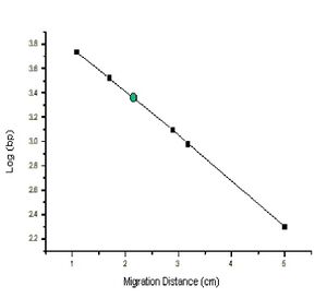 The distance a DNA fragment travels is inversely proportional to its length. Over time fragments of similar length accumulate into “bands” in the gel. Higher concentrations of agarose can be used to resolve smaller DNA fragments. This figure shows the same DNA fragments resolved with three agarose concentrations. The 1000 base pair fragment is indicated in each.