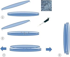 - Place the plate on the bench and rapidly move the plate across the bench top at 90 degree angles. Don't swirl the glass beads as you won't spread your cells evenly (they'll end up all at the edges of the plate).