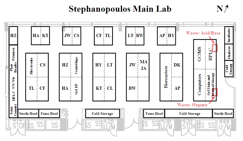 This page describes common-use equipment and laboratory areas in the Stephanopoulos Lab. If you are not a lab member and want to use this stuff, chances are that it's OK, but please check with a lab member first!
