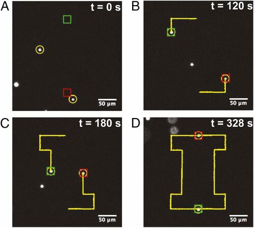 A Stokes trap allows for accurate positioning of particles to a target position. Micron-sized fluorescent beads were manipulated in the device with the model predictive control. The control algorithm was shown to be robust as the device had minimal fluctuation from its path to the target location. Additionally, two particles were manipulated simultaneously in the 6-channel device. The particles successfully interchanged their positions in a relatively brief amount of time. Additionally as shown in Figure 3, a pre-programmed path was used to allow the synchronized particles to draw out an “I” while they interchanged their position. There have been other Stokes trap designs that use optically activated micro-rotors as well to trap particles efficiently [7]