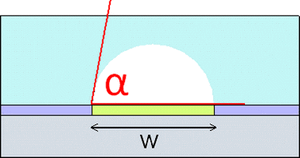 - [math]\displaystyle{ cos(\theta) = \frac{(\gamma_s − \gamma_{sl})}{\gamma_{lv}} }[/math]