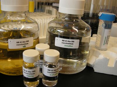 We will be receiving our bacteria with the plasmid already inserted. This culture will come in the form of a "stab" or "slant", a test tube with a small amount of bacteria on a slanted media. To continue the experiment we will have to further culture the bacteria by streaking out the stabs onto LB+amp plates. The plates will be incubated 37° overnight.