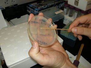 We will be receiving two strains of bacteria to transform. These strains will come in the form of a "stab" or "slant", a test tube with a small amount of bacteria on a slanted media. To continue the experiment we will have to further culture the bacteria.