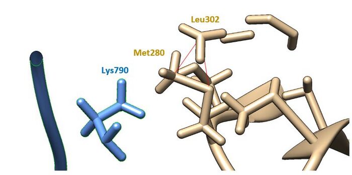- 2 clashes are shown below, interacting with itself (Leu 302)