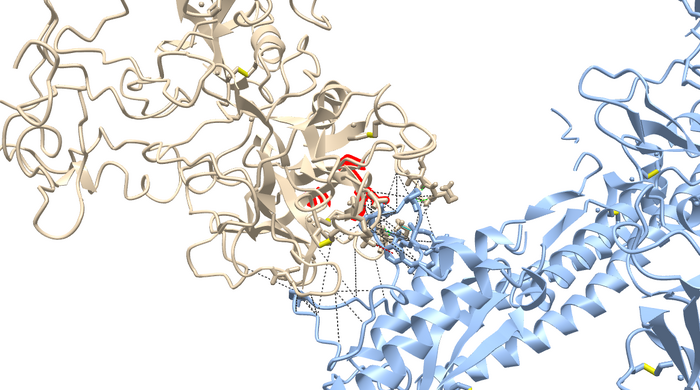 - cornflower blue = SARS-CoV-2, tan = TMPRSS2