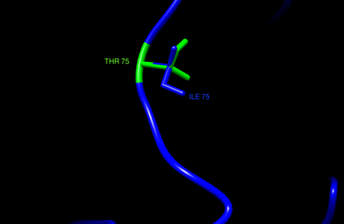 - this mutation does not appear to cause steric hinderance with neighboring residues, however further steric analysis shows that it will clash with neighboring residues on itself