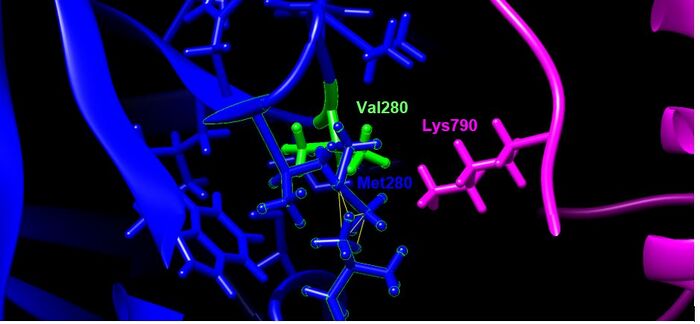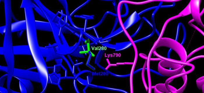 - rs142446494 V280M mutation was visualized using Chimera using the methodology listed above