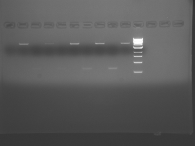 Here is an example of a gel with all the expected bands, as well as a gel with the needed bands excised. Nice work!!