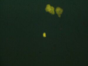 Caption for Agi's example pictures, 40X, used 1% alginateFigure: Yellow Group. 10X FITC filter. 3D 1% alginate chondrocyte cells with no collagen II.
