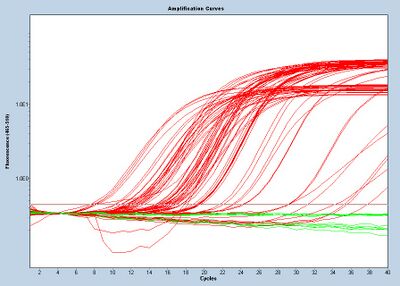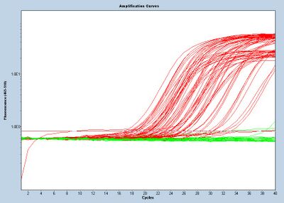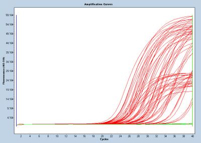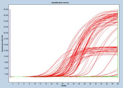 The text file below contains all of the T/R data. Two different CP values are given. The first is calculated when all samples are thresholded at the same level. The second is calculated when a separate threshold is made for each primer set.