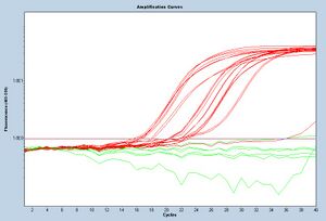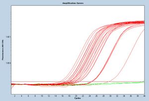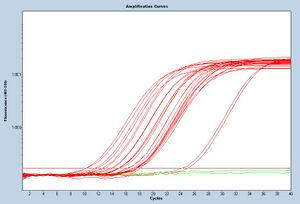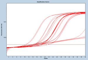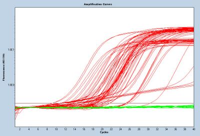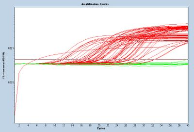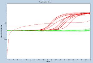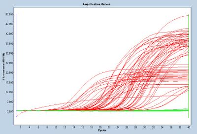The text file below contains all of the T/R data. Two different CP values are given. The first is calculated when all samples are thresholded at the same level. The second is calculated when a separate threshold is made for each primer set. (The latter is likely to be more reliable.)