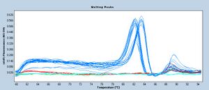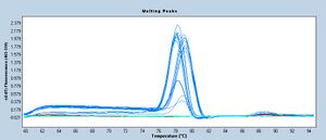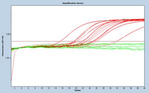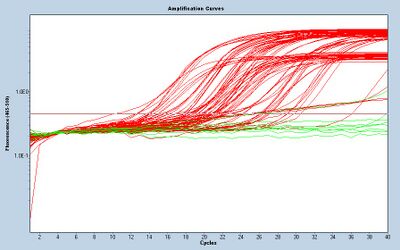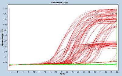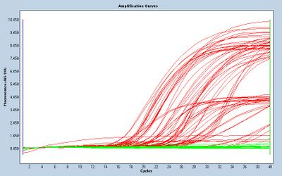 The Excel file below contains all of the T/R data. Two different CP values are given. The first is calculated when all samples are thresholded at the same level. The second is calculated when a separate threshold is made for each primer set.