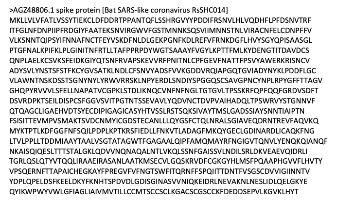 - I then downloaded the spike protein sequence in FASTA format to my computer's hard drive