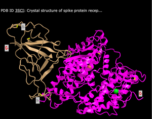 - 3SCI Spike Protein of SARS-CoV RBD (optimized for human ACE2 recognition) and Human ACE2