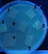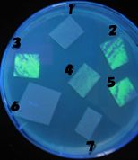 - Each Receiver colony was transfered to a nitrocellulose filter and placed on a Sender(BBa_S03623(JW1908)) containing bacterial plate (1~3) or a sender-absent negative control plate(t=0) to observe how receiver type affects the time taken for the colonies to display visible fluorescence.