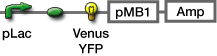 - LB-Amp+0.2 % Glucose, (pGFPuv, pLac-Venus YFP, pLac-mCherry, pUC19)