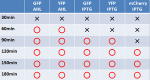 - AHL induction took a shorter time than IPTG for fluorescence to be observable.