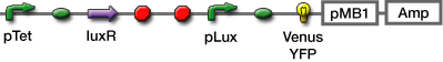 3OC6HSL -> Venus YFP Venus YFP Producer Controlled by 3OC6HSL Receiver