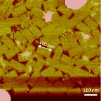 Second, we prepared cyclops DNA Origami. Cyclops DNA Origami is not using staple strands in middle of Smiley DNA origami. We shown Fig. 13 to the result of AFM observation. This result show that the one-eyed smiley “Cyclops” was prepared. As expected, smiley DNA Origami was shrunk by blunt-end π–π stacking interactions within a molecule. Farther, we added staple strands of middle of Smiley DNA origami. In the result, cyclops DNA origami transformed the smiley DNA origami (Fig. 14).