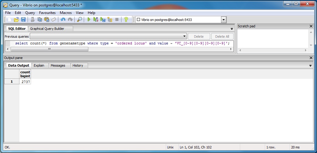 Postgres Database name:Vibrio