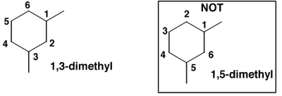 So the full name of this molecule is cis-1,3-dimethylcyclohexane. We write the name left to right, but we devised the name right to left.