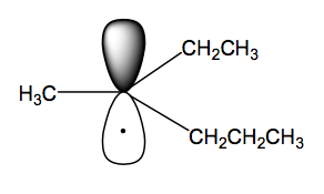 Well, that's the simple story, which should be your take home message. In fact things are not so simple. Here's a recent computational study and paper on the shape of the t-butyl radical, which will tend to adopt a pyramidal structure, but where there is a very low barrier to inversion, meaning we can almost treat it as planar. Here's some original computational work on this. It turns out that most alkyl radicals are pyramidal, except the methyl radical (CH3·) which is planar.
