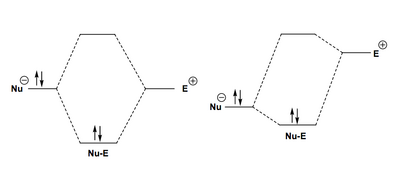 The first thing to say, by way of introduction, is that we need to remember that reactions don't just happen as if by magic between the two ions. The nucleophile and electrophile have molecular orbitals on them that need to align for a reaction to occur. In the case of polar reactions an electron pair in a filled molecular orbital on the nucleophile needs to overlap with an empty molecular orbital on the electrophile. Good overlap (giving a strong bond) requires these orbitals be close in energy.