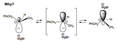 Carbanions don't (usually) retain their stereochemical integrity, which is kind of annoying actually.