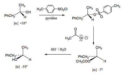 And we can prove all this (backside attack and no intermediates) by using an enantiopure substrate - an SN2 reaction gives an enantiopure inverted product in the following sequence.